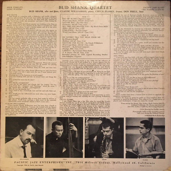 Bud Shank Quartet Featuring Claude Williamson - Bud Shank (LP, Album, Mono) (Very Good (VG))