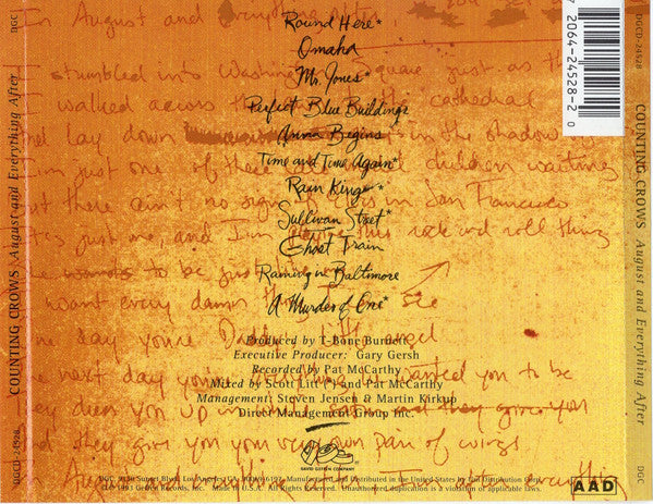 "August And Everything After" words & music by Adam Duritz © 1993 EMI Blackwood Music Inc./Jones Falls Music BMI