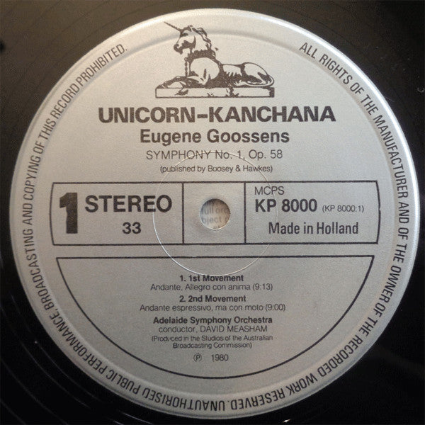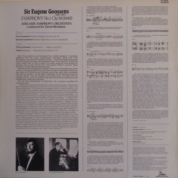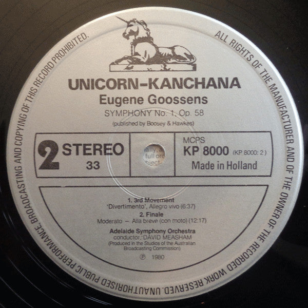 Eugene Goossens* - David Measham, Adelaide Symphony Orchestra - Symphony No. 1 (LP) (Very Good Plus (VG+))