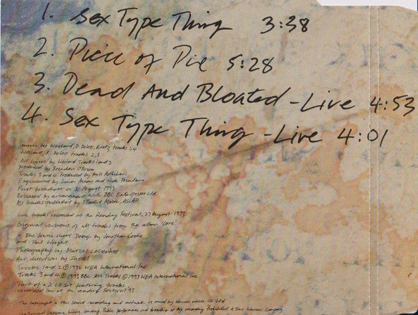 The release is housed in a j-card case. Hype sticker affixed to case states: "A7293CD Part of a 2 CD set features previously unreleased live material from Reading '93". The other disc from the set can be located here.