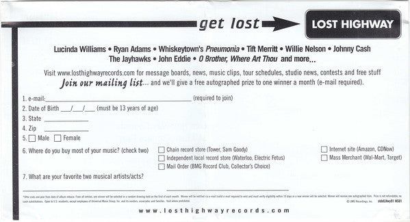 May have come with a Lost Highway "Get Lost" registration mailer.