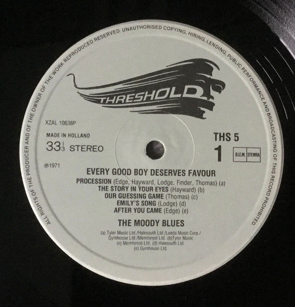 All instruments played by the Moody Blues.