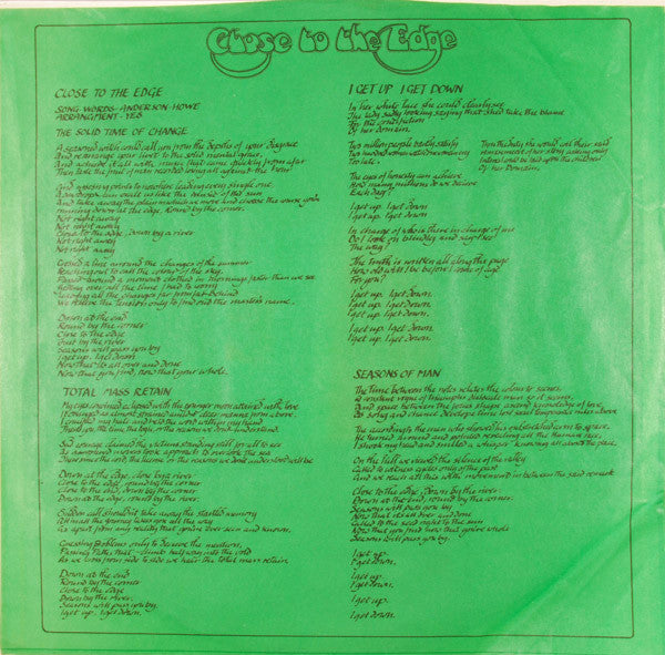 Custom inner sleeve contains lyrics