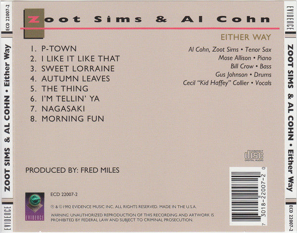 Zoot Sims And Al Cohn - Either Way (CD, Album, RE, RM) (Very Good (VG))